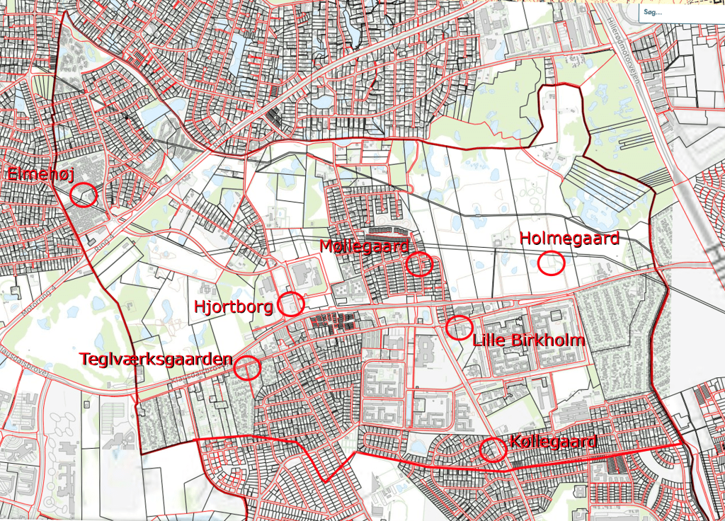 Længere nede er et kort over hvor disse gårde har ligget.