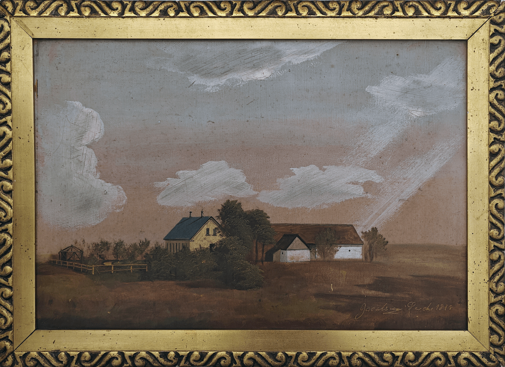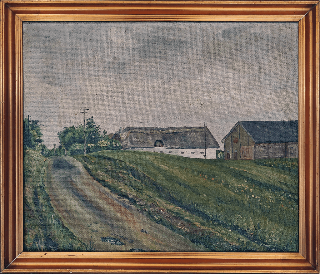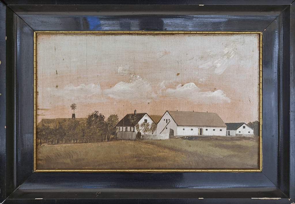 Malerierne herunder er af gårde i Hjortespring og var udstillet i foreningens telt til Herlev Festuge 2025.