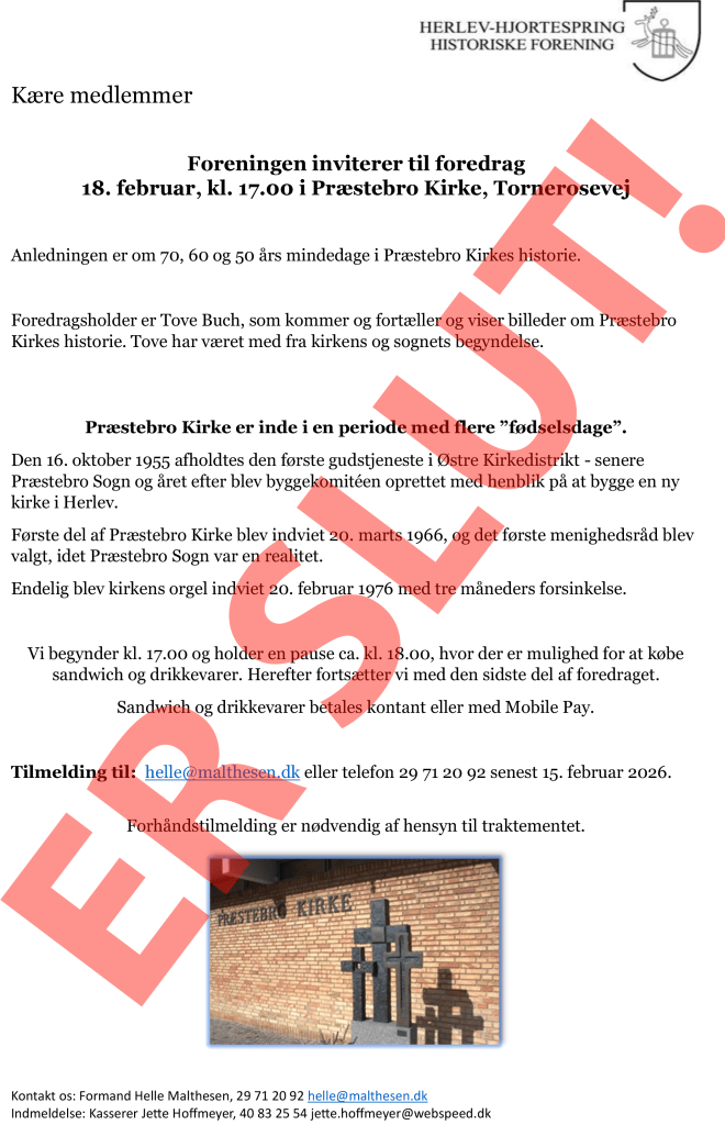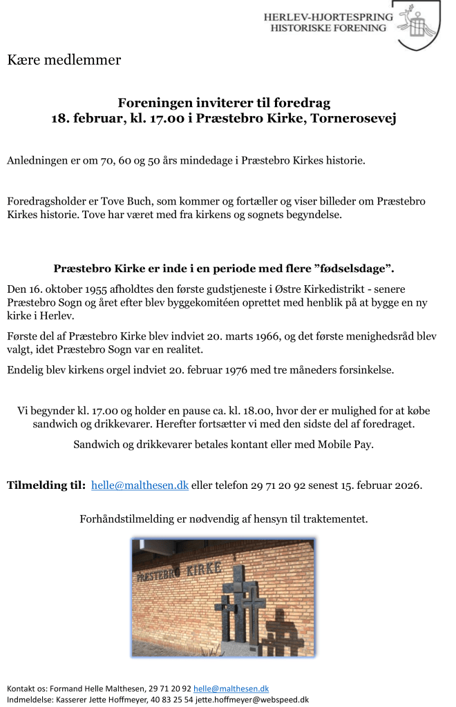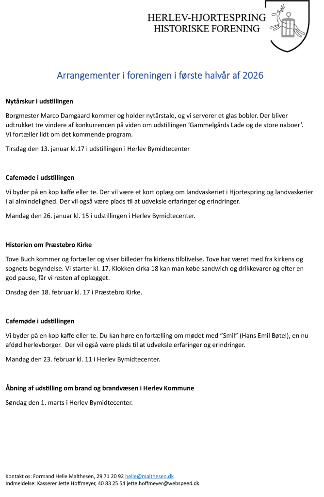 2025’s første arrangement er i foreningen er “Herlevs historie på vers”, en sangaften i Præstebro Kirke, torsdag d . 27. februar, kl 19.