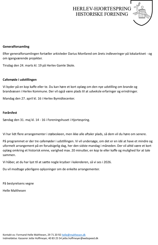 Indkaldelse til generalforsamling i Herlev-Hjortespring Historiske Forening.