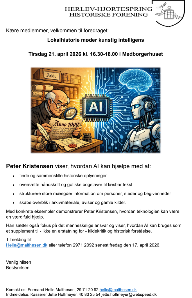 Tirsdag d. 16. april, kl. 16-18 i lokalarkivet Herlev Bibliotek.