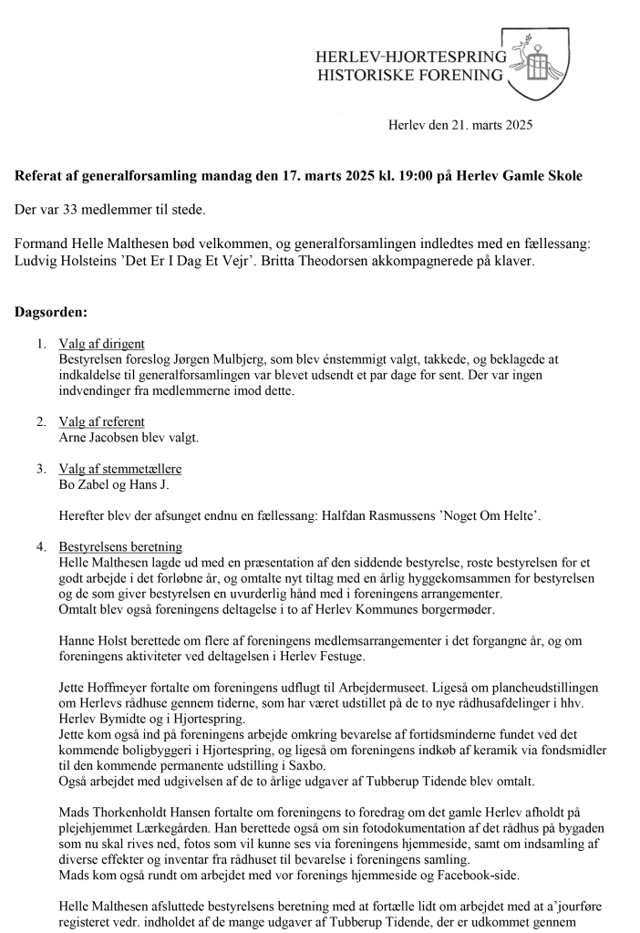 Herunder referat fra foreningens generalforsamling mandag d 17. marts 2025 afholdt på Herlev Gamle Skole.